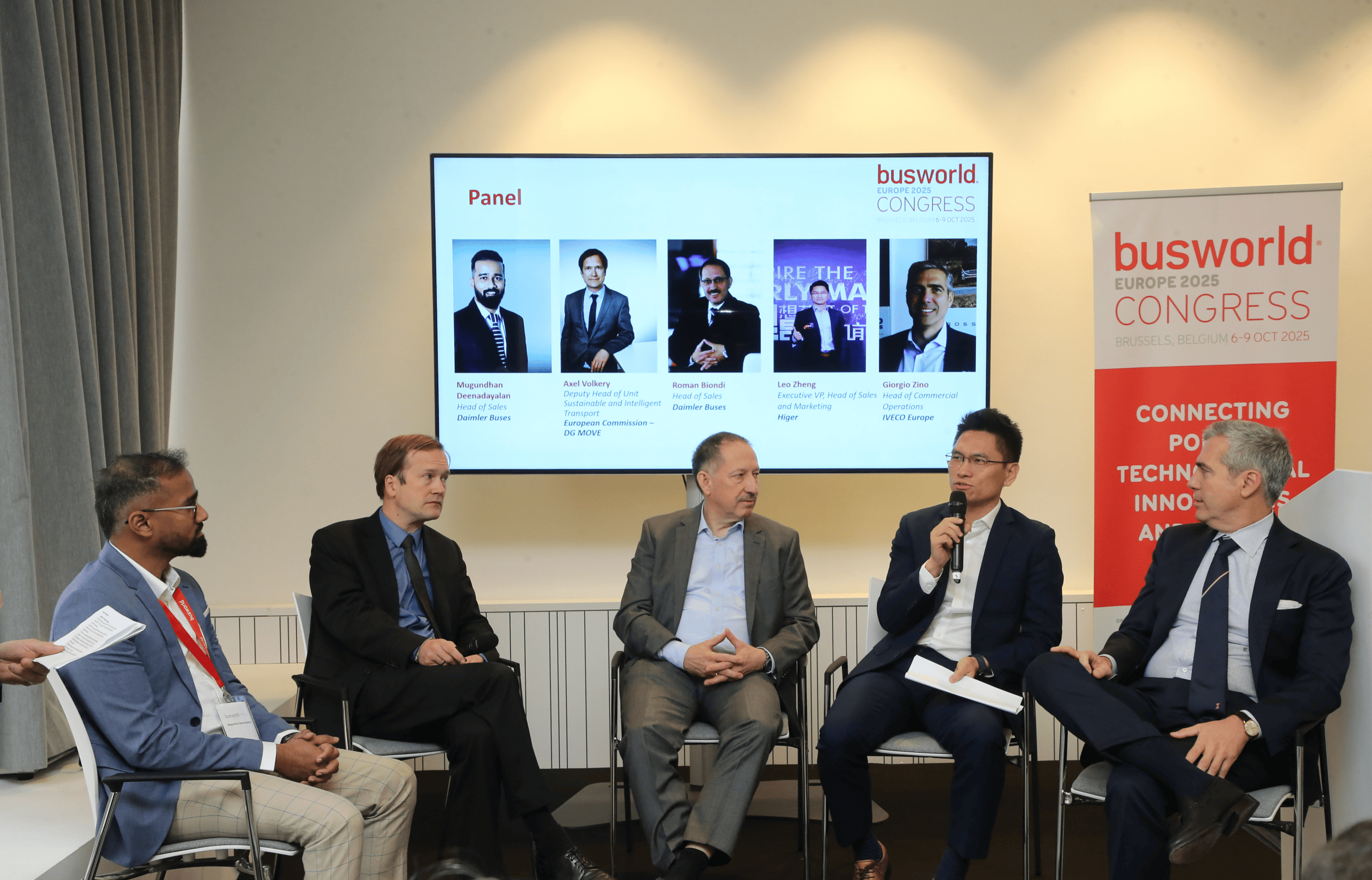 2025年10月4日至9日,备受全球客车行业瞩目的第28届世界客车博览会(Busworld)在比利时布鲁塞尔隆重举行。本届展会吸引了来自38个国家的520余家展商及超8万名专业观众,集中展示了客车产业在电动化、智能化、低碳化领域的最前沿技术与解决方案。苏州金龙面向欧洲首发的三款纯电新V系客车以及另外一款展出的Azure12纯电公交也成为展会的“明星产品”,为欧洲客运行业转型之路提供了绿色引擎和澎湃动力。