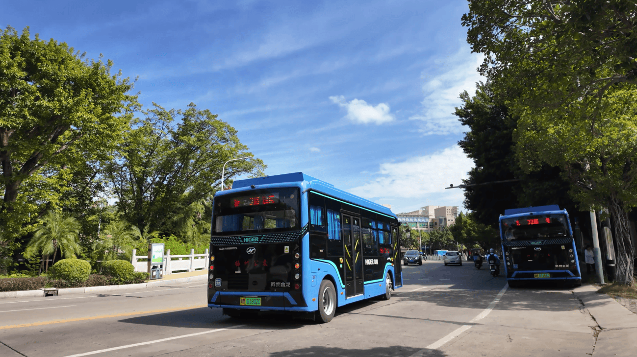 一辆辆蓝色的移动风景线,不仅承载着乘客的出行需求,更串联起梅州的过去与未来。梅州的暖,藏在低平的车门里,藏在平稳的车程中,藏在海格纯电公交的每一处细节里。当旅途接近尾声,海格客车缓缓驶远,车尾“苏州金龙”的标识在夕阳下愈发清晰,像在诉说着与客都的未完故事。