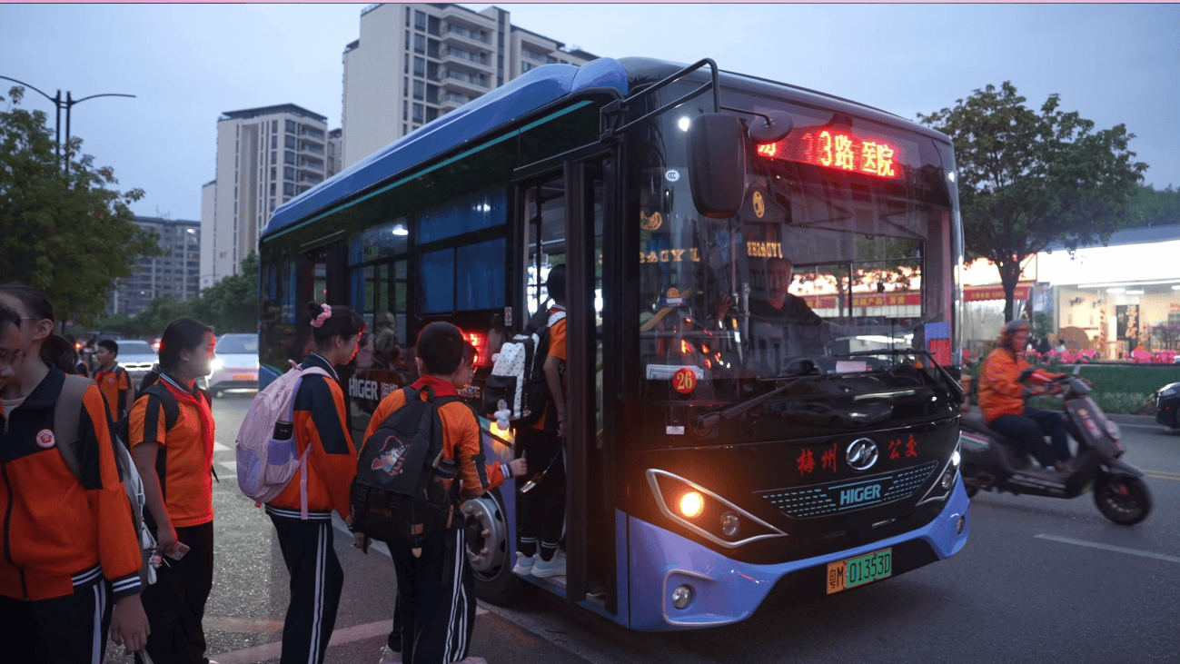而且一路可以感受到,梅州公交深受老人和学生们喜爱。一级踏步的“贴心”设计,让同行的阿婆不用搀扶就能轻松上车;到了放学时间,这辆蓝色精灵就成了学生们的“专属伙伴”,“每天放学坐公交,几站地就到家,和同学一起走,爸妈特别放心”,孩子们的话里满是信赖。