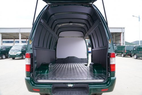 作为精准匹配邮政快递运营需求的核心车型,龙运 GLE850是金旅专为城配物流场景打造的明星产品。该车型体型小巧灵动,通过性尤为突出,高顶版车身高 2260mm、宽 1700mm,可在市区狭窄街巷灵活穿梭;同时兼具“外小内大” 的空间优势,高顶版货厢容积达8.2m?,内部长3.2m、高 1.65m,人员可直立开展装卸作业,侧移门、后掀背门及双开门的多元设计,能完美适配商超多点配送等复杂城配场景。在载重与耐用性方面,车型配备5片钢板弹簧后悬架及 195/70R15载重轮胎,货厢采用 1.2mm 加厚钢板材质,既能充分满足邮政物流的实际载重需求,又能有效延长车辆使用寿命,降低长期运营损耗。