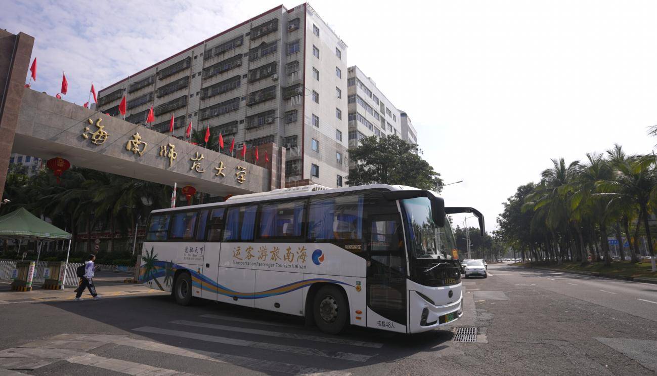 清晨六点半,海南师范大学龙昆南校区停车场,阳光透过椰林洒在一排崭新的纯电大巴上,蝶翼式前围与贯穿式尾灯在光影中格外亮眼。随着第一班发车时间临近,教职工们陆续走向标有“海师大专线”的苏州金龙海格新V系车辆,前往海师大另一校区。这批海格新V系纯电动客车,是海南师范大学携手海南逸驰天下汽车租赁有限公司(以下简称“逸驰天下”)打造的暖心通勤方案。自2024年投入运营以来,苏州金龙海格客车以零排放、高舒适、低成本的优势,成为连接海师大校园之间学术交流的“绿色纽带”,既彰显着学校以人为本的办学温度,也见证了逸驰天下与苏州金龙的不解之缘。