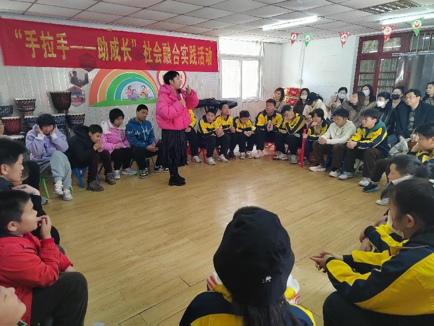 2月18日是开工第一天,阳光灿烂、春光明媚。合肥市四十五中2022级星辰(5)班部分同学在监护人的陪伴下来到庐阳区双岗街道万小店社区残疾人工作站,和工作站兄弟姐妹们共同开展“强国复兴有我”社会实践公益活动。合肥市庐阳区为民社会工作服务中心李老师向大家介绍了工作站在训人员康复、生活等情况,科普了孤独症相关知识和帮助他们融入社会生活的技巧。