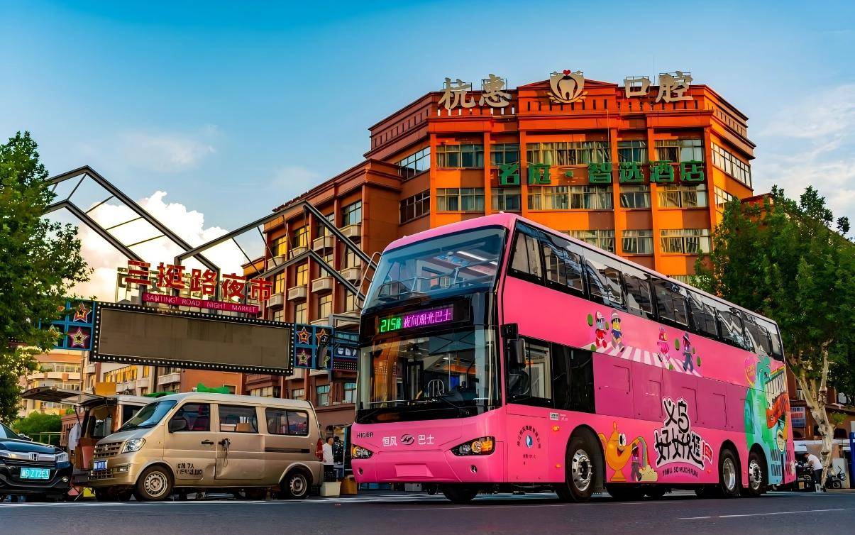 自驾热潮下,短途接驳成了假日交通的重要支撑之一。在城市道路中,海格公交与观光旅游车辆穿梭往返,以高效运力疏导客流,与自驾车流共同织就覆盖全域的交通网,确保游客“进得来、走得顺、玩得爽”。随着双层巴士在全国各地的逐渐推广,“坐车赏景”两不误的方式也将成为越来越多游客的选择。在义乌,苏州金龙研发的海格双层观光巴士外观设计独具匠心,巴士内部采用上下两层设计,配备旅游专用舒适座椅,上层360°全景天窗专为旅游观光量身打造,带来文旅新体验。
